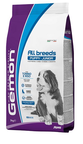 GEMON ALL BREEDS PUPPY JUNIOR ar tunci un rīsiem