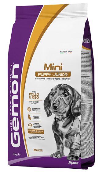 GEMON MINI PUPPY JUNIOR ar cāli un rīsiemPilnvērtīga lolojumdzīvnieku barība mini izmēra kucēniem